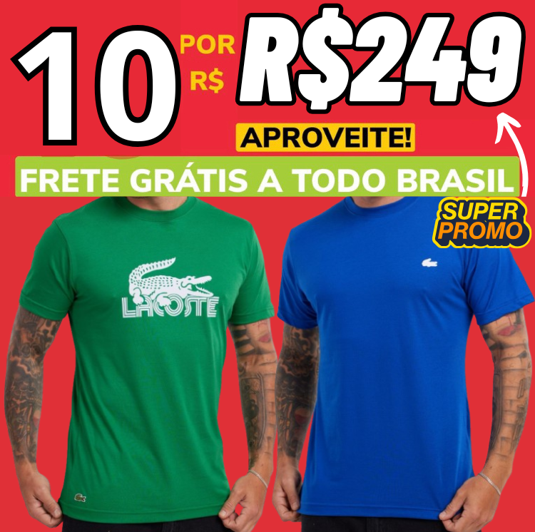 Garanta já seu PACOTE 10 CAMISETAS IMPORTADAS COM FRETE GRÁTIS e dê um upgrade no seu estilo com praticidade e economia. Estoque limitado!